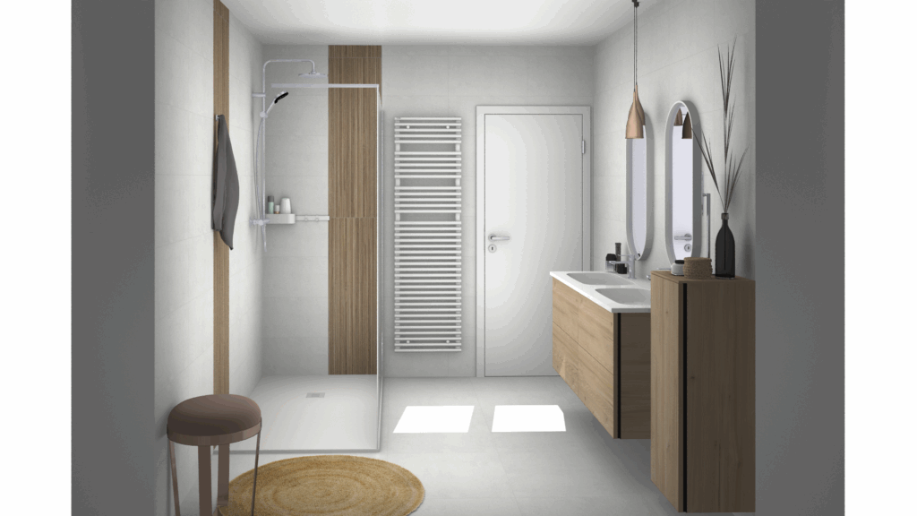 Découvrez quelques-uns de nos projets, de la conception 3D à la réalisation finale. Modernes, authentiques ou gain de place, chaque salle de bain est unique.